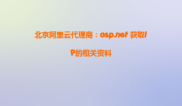 北京阿里云代理商:ASP.NET 获取IP相关资料详解