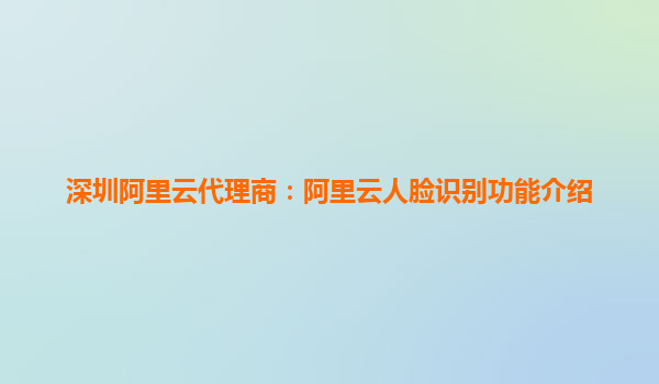 深圳阿里云代理商:阿里云人脸识别功能介绍