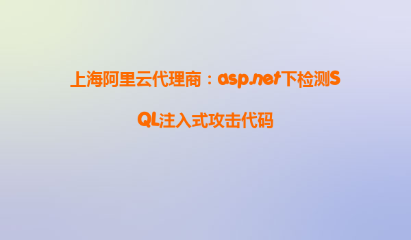 上海阿里云代理商:ASP.NET环境下检测SQL注入攻击的高效方案
