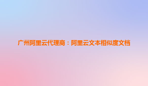 广州阿里云代理商:阿里云文本相似度文档解析与应用