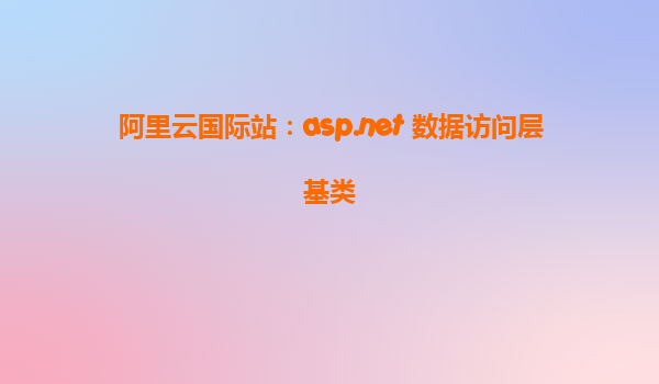 阿里云国际站:ASP.NET 数据访问层基类的开发与应用