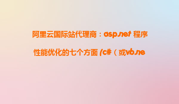 阿里云国际站代理商:ASP.NET 程序性能优化的七个方面(C# / VB.NET 程序改进)