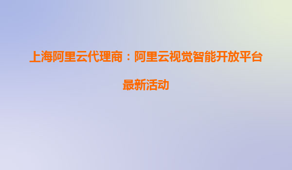 上海阿里云代理商:阿里云视觉智能开放平台最新活动解读