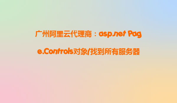 广州阿里云代理商:ASP.NET Page.Controls对象与服务器控件管理应用探讨