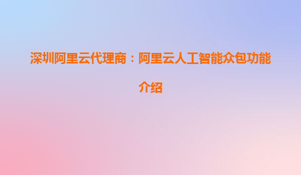 深圳阿里云代理商:阿里云人工智能众包功能介绍
