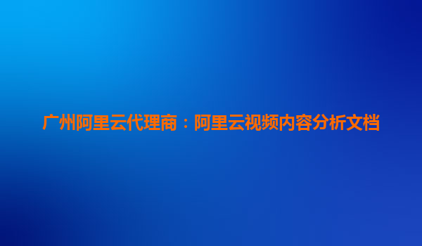 广州阿里云代理商:阿里云视频内容分析文档详解