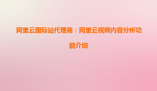 阿里云国际站代理商:阿里云视频内容分析功能介绍