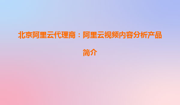北京阿里云代理商:阿里云视频内容分析产品简介