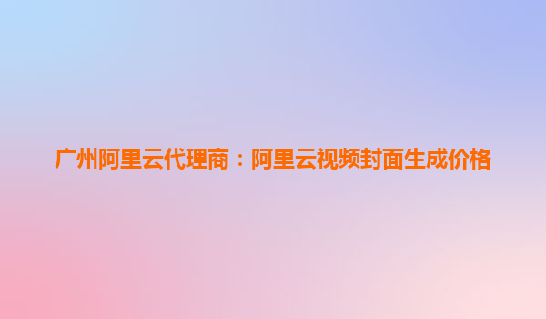 广州阿里云代理商: 阿里云视频封面生成价格分析