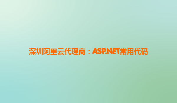 深圳阿里云代理商:ASP.NET常用代码