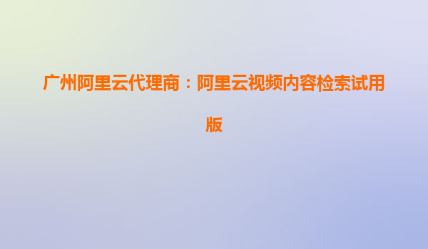广州阿里云代理商:阿里云视频内容检索试用版