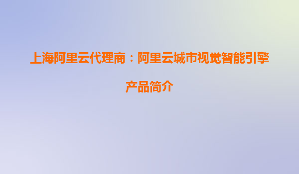 上海阿里云代理商:阿里云城市视觉智能引擎产品深度解析