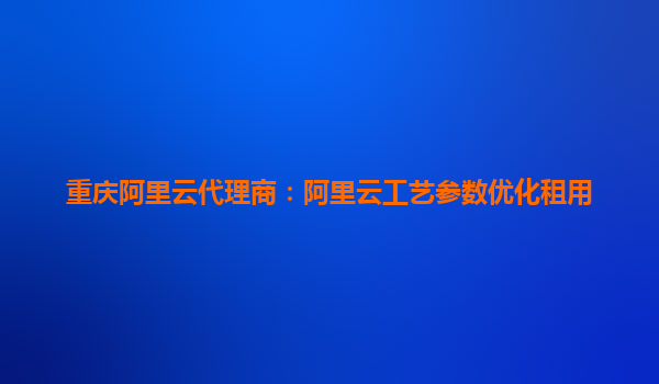 重庆阿里云代理商:阿里云工艺参数优化租用解决方案