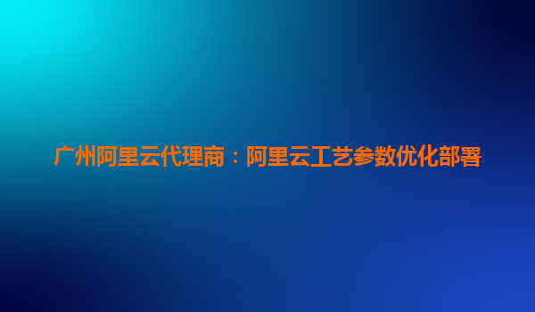 广州阿里云代理商:阿里云工艺参数优化部署的卓越实践
