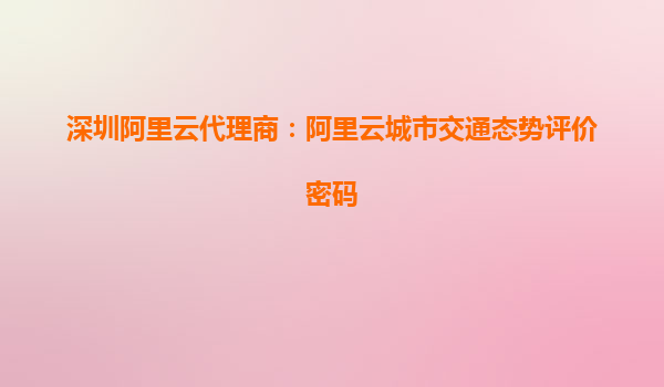 深圳阿里云代理商:阿里云城市交通态势评价密码解析