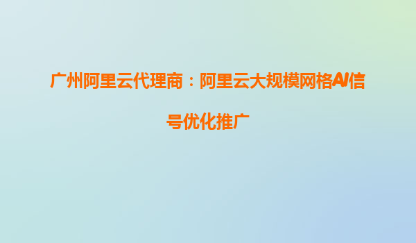 广州阿里云代理商:阿里云大规模网格AI信号优化推广