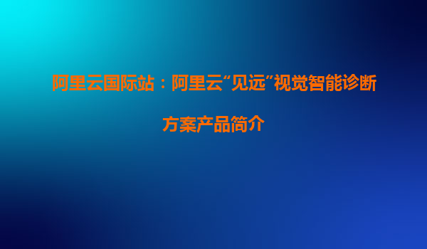 阿里云“见远”视觉智能诊断方案:开启智能视觉分析新纪元