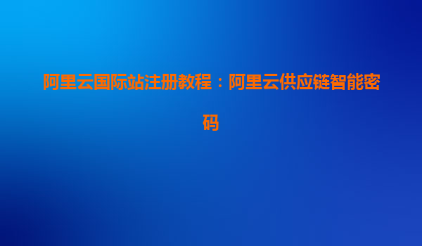 阿里云国际站注册教程:开启全球智能供应链新篇章