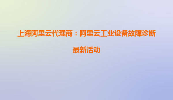 上海阿里云代理商:阿里云工业设备故障诊断最新活动深度解析