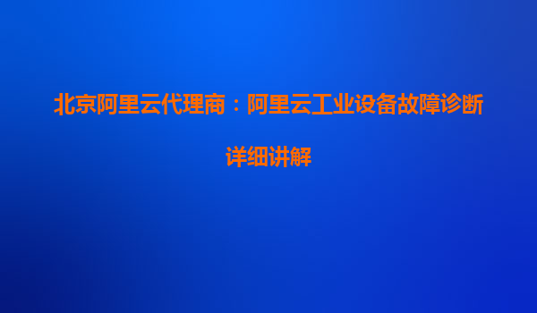 北京阿里云代理商:阿里云工业设备故障诊断解决方案深度解析