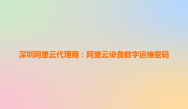 深圳阿里云代理商:解锁阿里云设备数字运维密码