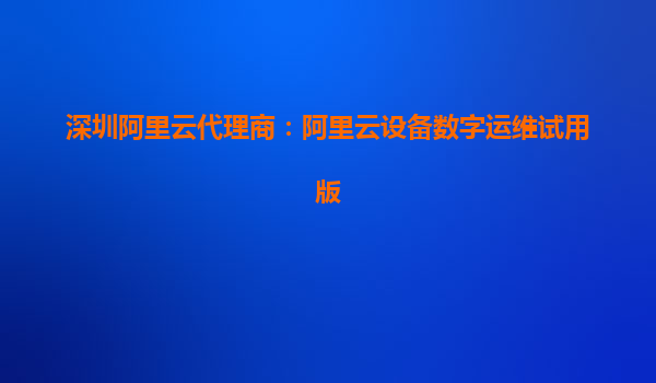 深圳阿里云代理商:阿里云设备数字运维试用版详解
