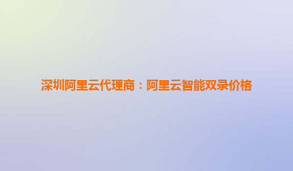 深圳阿里云代理商:阿里云智能双录价格解析与核心优势
