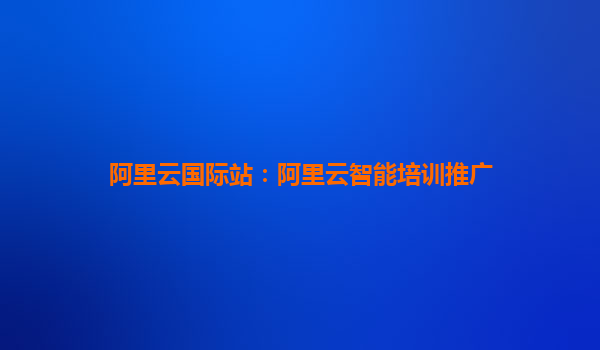 阿里云国际站:引领智能培训新纪元,赋能全球企业数字化转型
