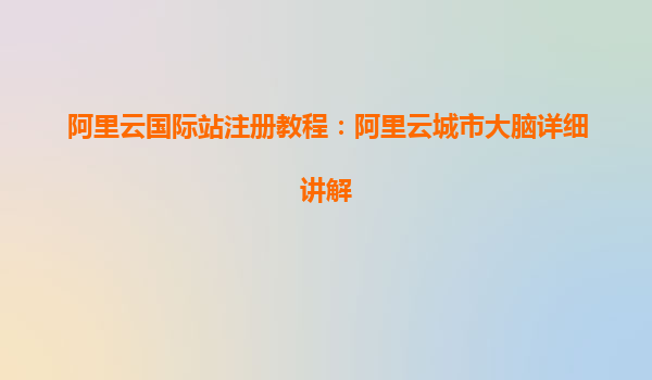 阿里云国际站注册教程:阿里云城市大脑详细讲解