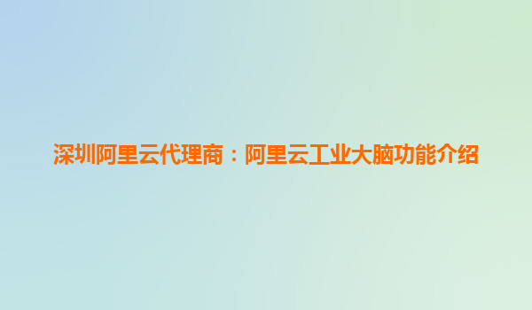 深圳阿里云代理商:阿里云工业大脑功能介绍