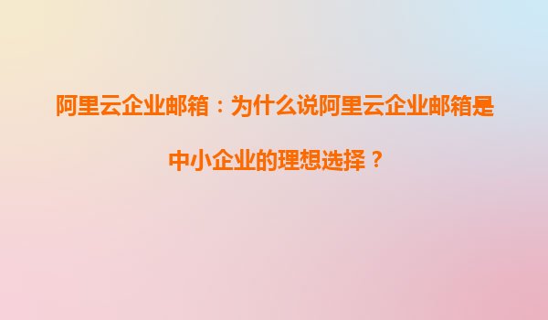 阿里云企业邮箱:为什么说阿里云企业邮箱是中小企业的理想选择?