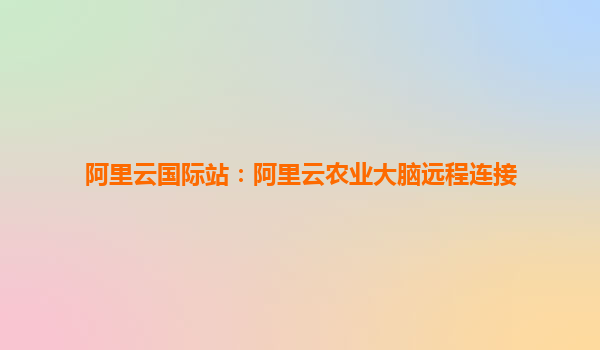 阿里云国际站:阿里云农业大脑远程连接赋能现代农业