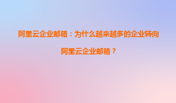 阿里云企业邮箱:为什么越来越多的企业转向阿里云企业邮箱?