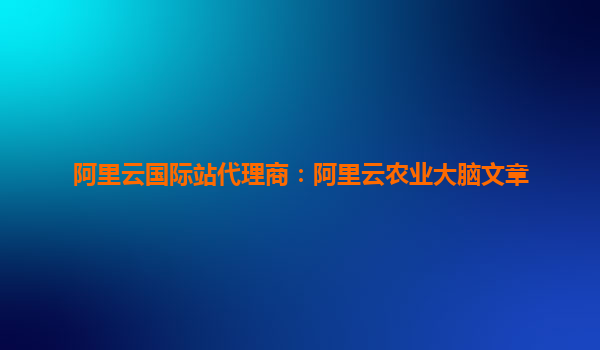 阿里云国际站代理商:阿里云农业大脑如何赋能现代农业