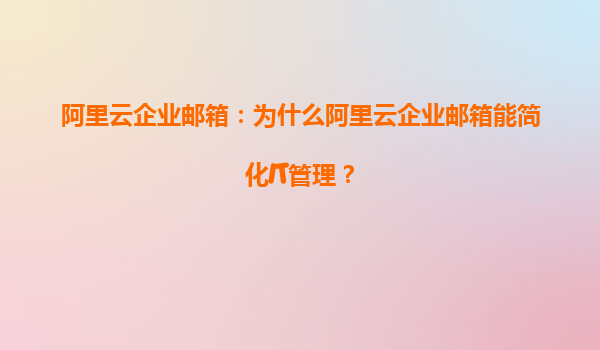 阿里云企业邮箱:为什么阿里云企业邮箱能简化IT管理?