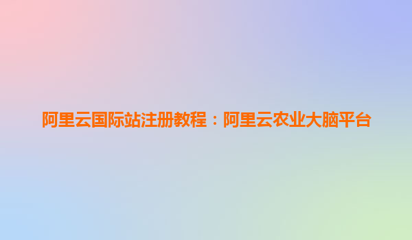 阿里云国际站注册助力全球农业智能化