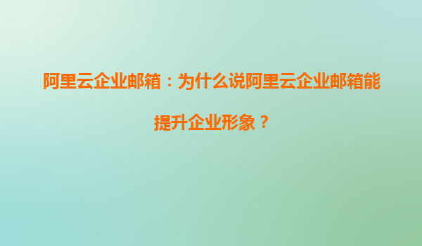 阿里云企业邮箱:为什么说阿里云企业邮箱能提升企业形象?