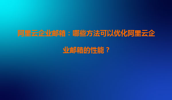 阿里云企业邮箱性能优化指南