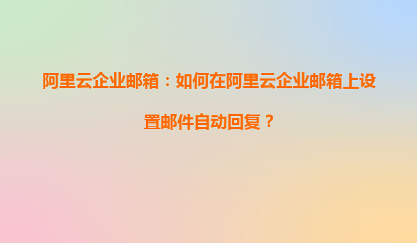 阿里云企业邮箱:如何在阿里云企业邮箱上设置邮件自动回复?
