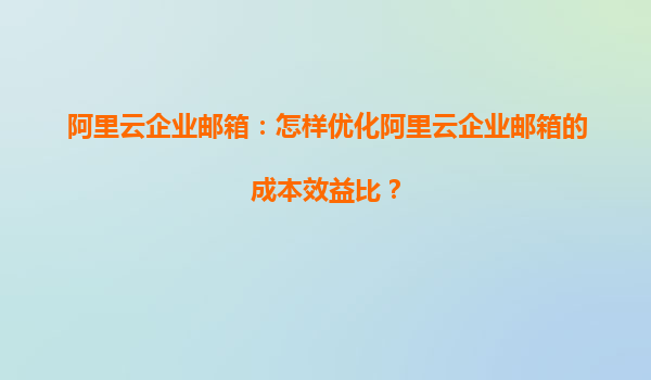 阿里云企业邮箱:怎样优化阿里云企业邮箱的成本效益比?