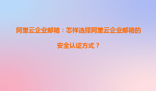 阿里云企业邮箱安全认证方式选择指南