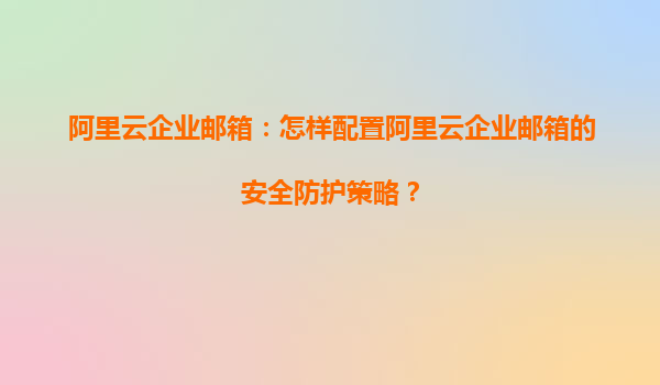 阿里云企业邮箱:怎样配置阿里云企业邮箱的安全防护策略?