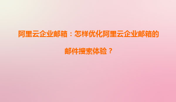 阿里云企业邮箱:怎样优化阿里云企业邮箱的邮件搜索体验?