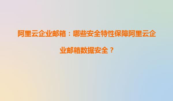 阿里云企业邮箱:全方位安全特性保障企业数据安全