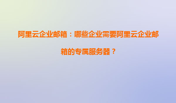 阿里云企业邮箱:哪些企业需要阿里云企业邮箱的专属服务器?