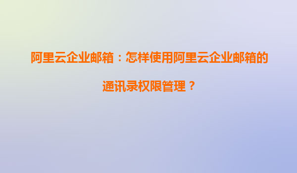 阿里云企业邮箱:通讯录权限管理详解与代理商优势