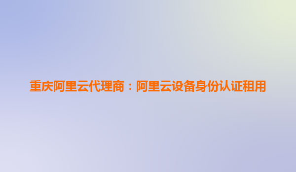 重庆阿里云代理商:阿里云设备身份认证租用