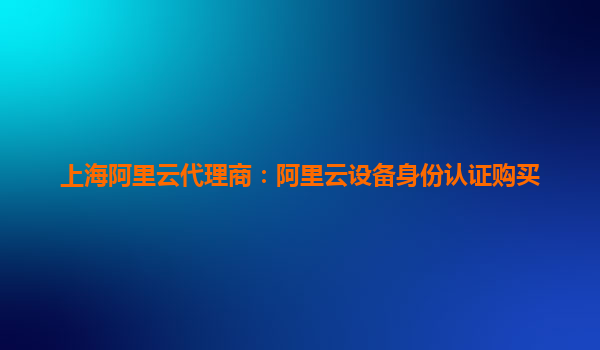 上海阿里云代理商:一站式了解阿里云设备身份认证服务