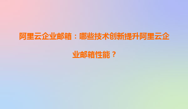 阿里云企业邮箱:哪些技术创新提升阿里云企业邮箱性能?