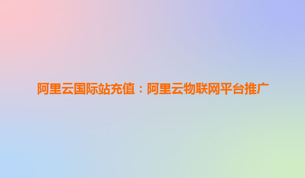 阿里云国际站充值:开启物联网平台高效部署新时代